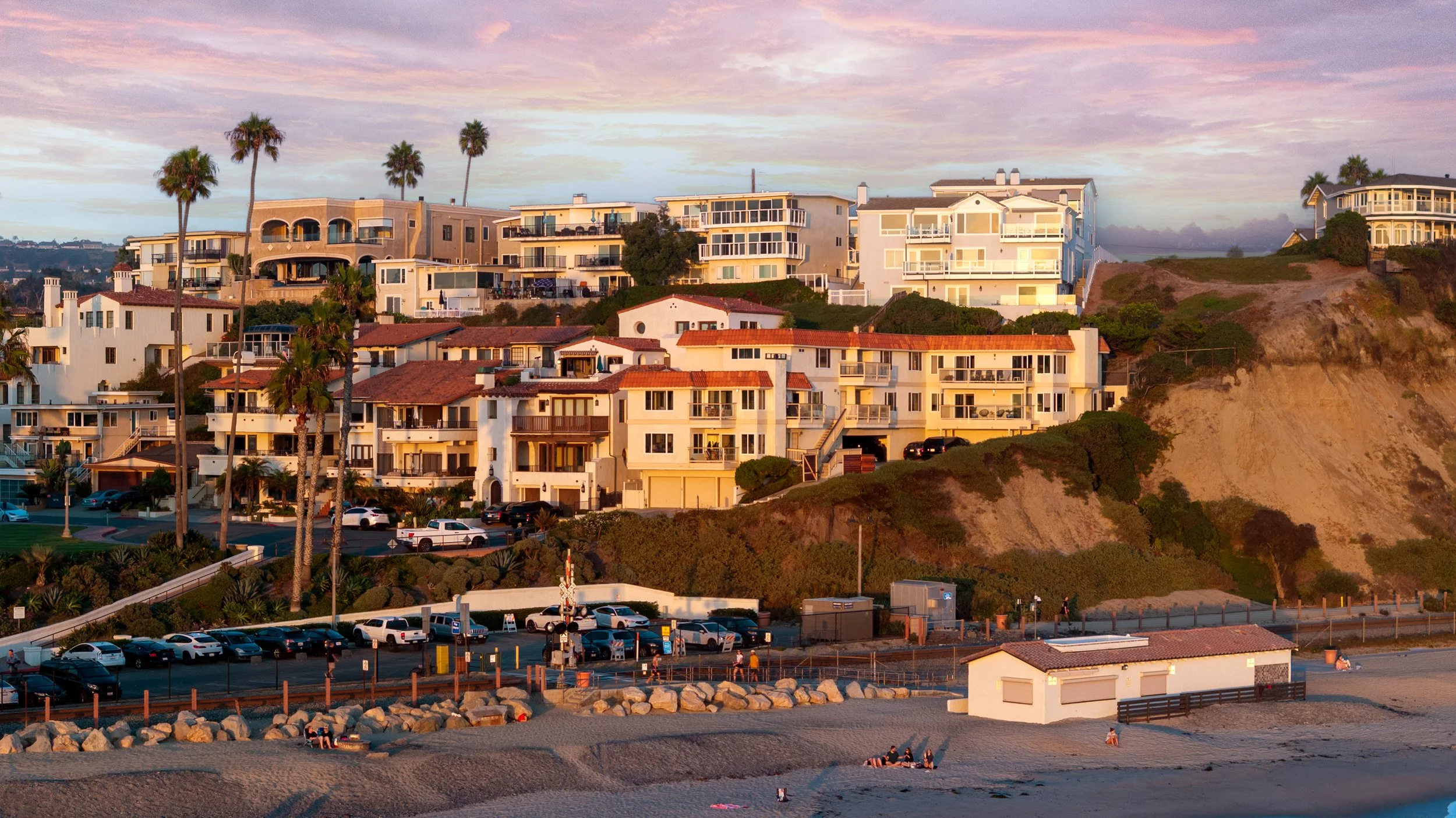 Overlooking the ocean on the most iconic cul-de-sac location just across from the historic Ole Hanson Beach Club, this beachy condo offers incredible views! Reaching the distant Dana Headlands with year-round sunsets, crashing waves below & Catalina / SC Islands between. Elevated high above with 2 private garages, EV charger (only private 2-car garage) & rare parking for 3 in the driveway, the unit is secured by coded privacy gates. Ideally positioned on the front with only one shared wall (no one above or below) nearly every room has a major ocean view. Inside, a light-filled living space with mirrored walls reflects the ocean throughout. Featuring LVP wood-like flooring, glass-pane stair railing, new recessed lighting throughout, wired speakers & shiplap fireplace. An outdoor viewing deck off the living brings the outdoors into this remodeled space. A dedicated dining room with large picture windows flows seamlessly into the lightly-used kitchen. A very dialed-in kitchen offers all-new stainless appliances, newly-added coastal subway tile backsplash, crisp white shaker cabinetry with new hardware, polished Neolith kitchen counters & comfortable bar seating for three. A dedicated laundry room & pantry just off the kitchen accesses the main level powder bath. Upstairs leads to two bedrooms & bathrooms. The guest bathroom has recently been remodeled to create a walk-in shower. The ocean-view guest bedroom features a built-in Murphy bed for optionality & shares a relaxing second-level viewing deck accessed through slider doors on each side. In the primary, large picture windows frame the Pacific while mirrored doors refract the emerald ocean abound. The primary offers his & hers closets, access to the view deck, & a very dialed primary ensuite bathroom with walk-in shower. Newer upgrades include dual pane windows, new custom window treatments (automatic solar shades), recessed lighting throughout, ceiling fans, smooth-coated first level, remodeled guest bathroom, kitchen updates & new stainless appliances, & 2022 water heater, this unit is absolutely turnkey! Easy access to sandy beaches & 2.5 mile beach trail just below, Outlet Mall & Theaters, popular Life Time Fitness & Tennis Club, several great golf courses, world-class surfing, a short walk to the highly-anticipated Miramar Food Hall (opening soon) & nearby trendy restaurants & cafes. For those seeking a laidback beachy lifestyle, this is the opportunity!