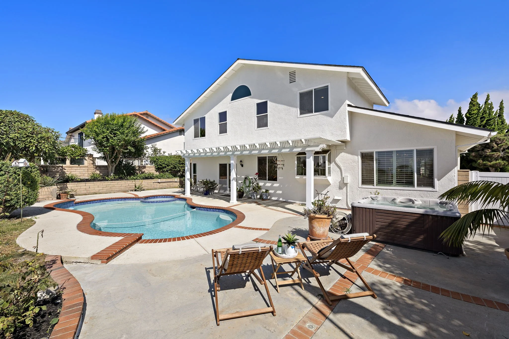 Situated on a 7,100 sq ft lot in the desirable Coast District of San Clemente, this home offers ocean views from both levels and epitomizes coastal living. The location balances lifestyle and convenience, less than two and a half miles from the beach, pier, and world-class surfing, just over a mile from San Clemente High School, and only seven minutes to the shops and restaurants along Del Mar Street. Upon arrival, the home’s fresh exterior upgrades, including a new roof, windows, vinyl fencing, and HVAC system, set a refined tone. Inside, light-filled living spaces flow seamlessly, highlighted by an upgraded kitchen with soft-close cabinetry and a fully remodeled primary suite featuring a spa-inspired bathroom with dual sinks, soaking tub, and walk-in shower. Ocean views from the kitchen, primary suite, and secondary bedrooms make daily living here truly special. Designed for entertaining, the backyard invites with a heated pool, built-in grill, above-ground and built-in spas, and upgraded pool equipment, all framed by coastal breezes and golden skies. A full bathroom downstairs enhances functionality for guests and indoor-outdoor living, while an upgraded ADT security system with cameras ensures peace of mind. Upstairs, the expansive primary suite commands the most dramatic views, complete with vaulted ceilings and a gas fireplace. Notable details include a family-friendly neighborhood setting within the Coast District, proximity to award-winning schools, and easy access to hiking trails, parks, and local amenities. Central to all that San Clemente and Dana Point have to offer, from historic downtown to the iconic San Clemente beach trail, this home presents an ideal opportunity to enjoy the Southern California lifestyle at its finest.
