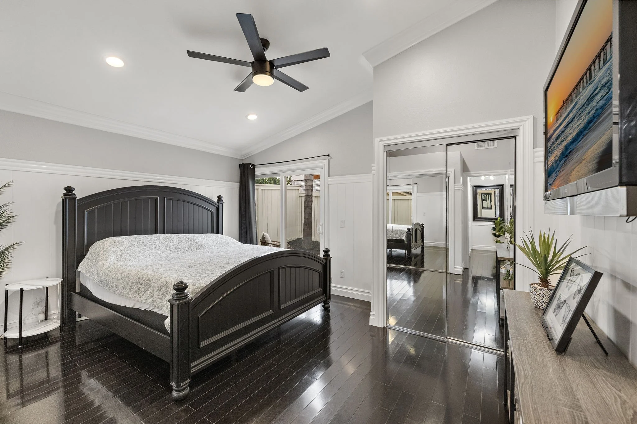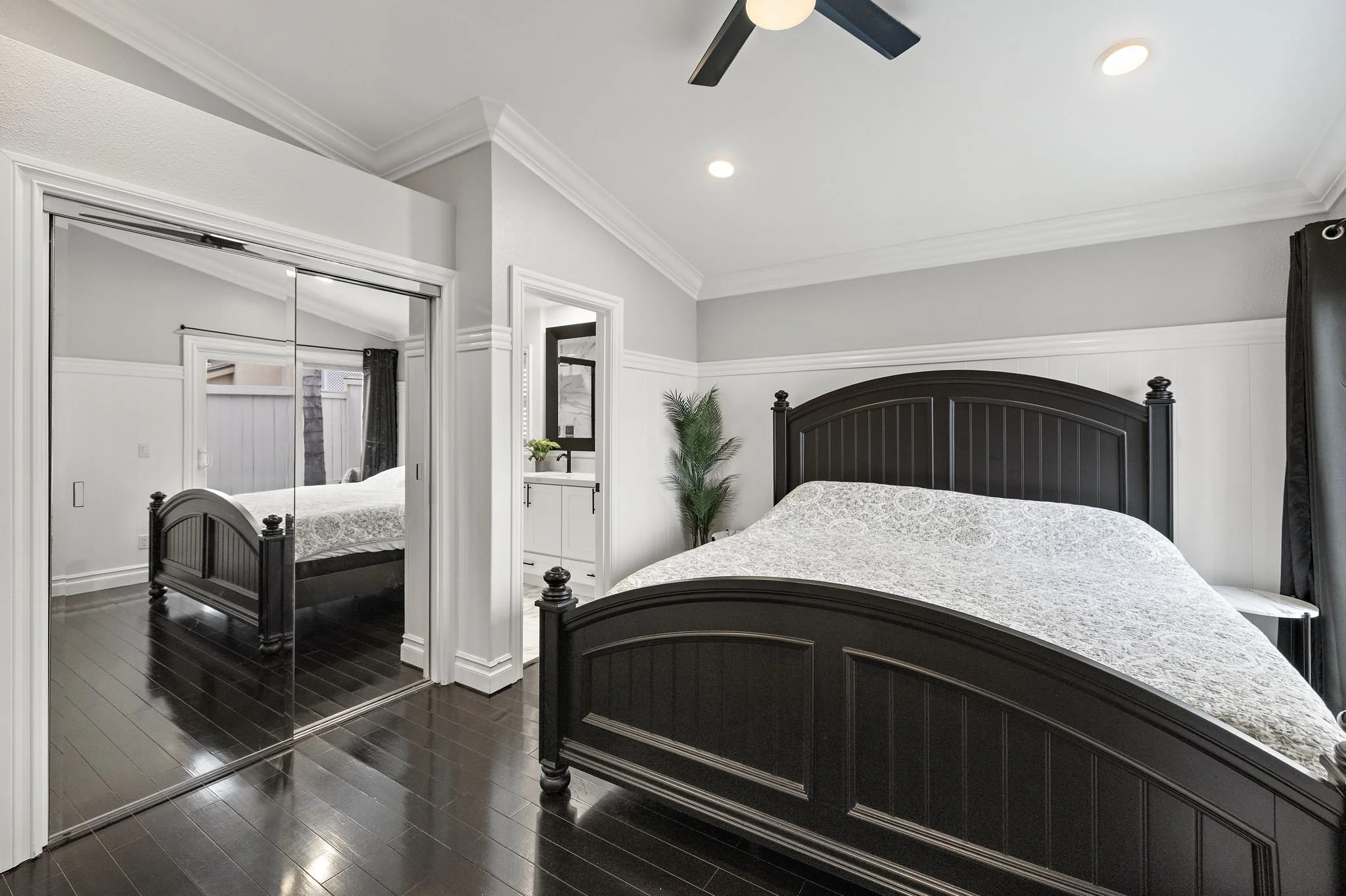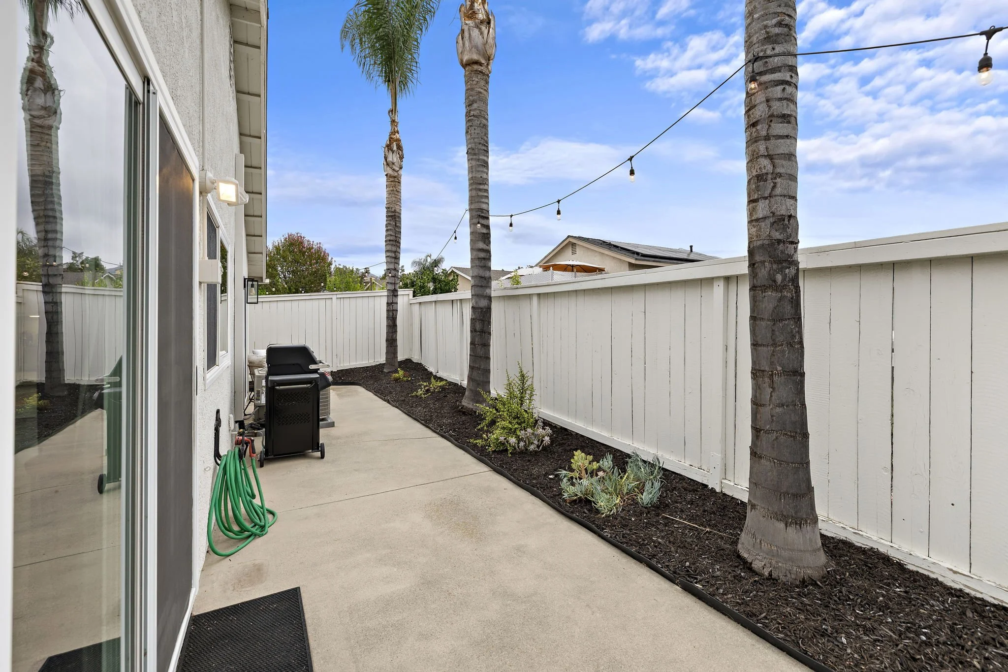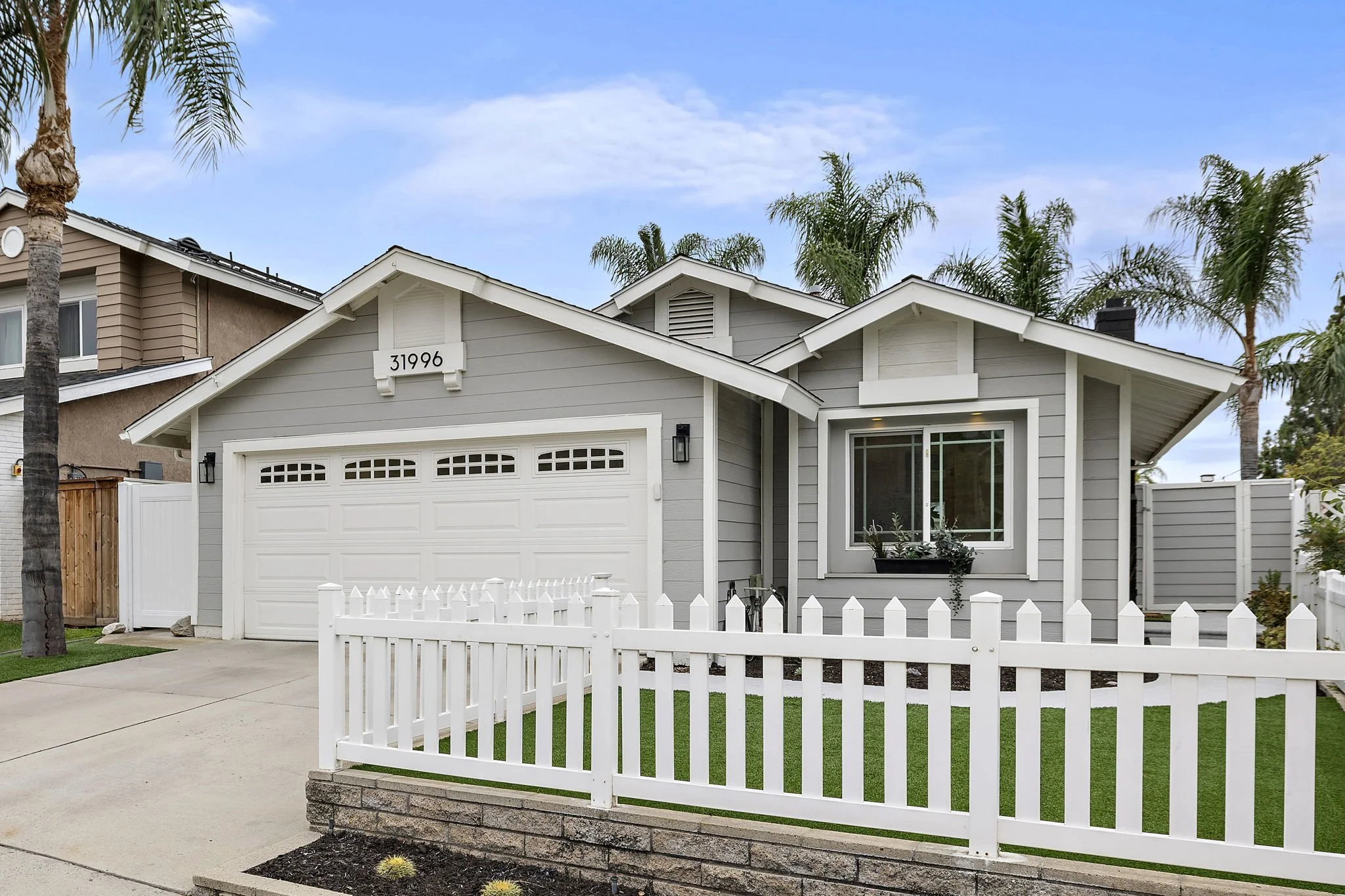 Ideally located on a peaceful side street cul-de-sac in the heart of Robinson Ranch surrounded by beautiful mountains, this updated single-level stunner is sure to impress! Upon arrival, high-pride-of-ownership is apparent with fresh improvements including newer exterior paint, light fixtures, and stylish landscaping. A white picket fence frames in the low-maintenance and useful front turf yard - a great outdoor space! An entry Dutch door welcomes you inside the large living room with a cozy gas fireplace, ascending ceiling plate with overhead fan and wired surround sound. Recently painted inside, the light and bright interior contrasts the dark hardwood flooring throughout. Just off the living room, the updated kitchen offers stainless appliances (newer range), new quartz counter tops, a new sink and faucet, a centered island, formal dining, clever bar-top seating, wainscoting, and ample Eastern-seaboard-style cabinetry for abundant storage. Large picture windows let natural light into the space and glass slider doors access the rear and side patios with an in-line gas fire pit. Very private outside and rare to come by! The family room and open kitchen create an inviting space for relaxing and entertaining. Beyond the living areas, three generous bedrooms (one currently a nursery, one used as an office with bay window and vaulted ceilings) and two nicely-remodeled bathrooms all provide comfortable, turn-key living. The primary offers his & hers mirrored closets, wainscoting, and spa-like bathroom with new vanity, dual sinks, fixtures, counter top, shower enclosure, tile, and mirror. The full guest bathroom has also been highly upgraded in similar fashion and offers a tub. Other newer improvements and values: recessed lighting throughout, light fixtures, ceiling fans, interior/exterior paint, crown molding, a finished garage with MyQ smart garage door system, additional storage cabinets, epoxied floors, washer/dryer, water heater, privacy side gate, and routinely maintained HVAC system. Just a short walk to Blue Ribbon Robinson Ranch Elementary, amazing neighborhood parks, community pool and amenities, and close to shops, dining, and entertainment, this home offers turn-key convenience and a fun lifestyle beyond.