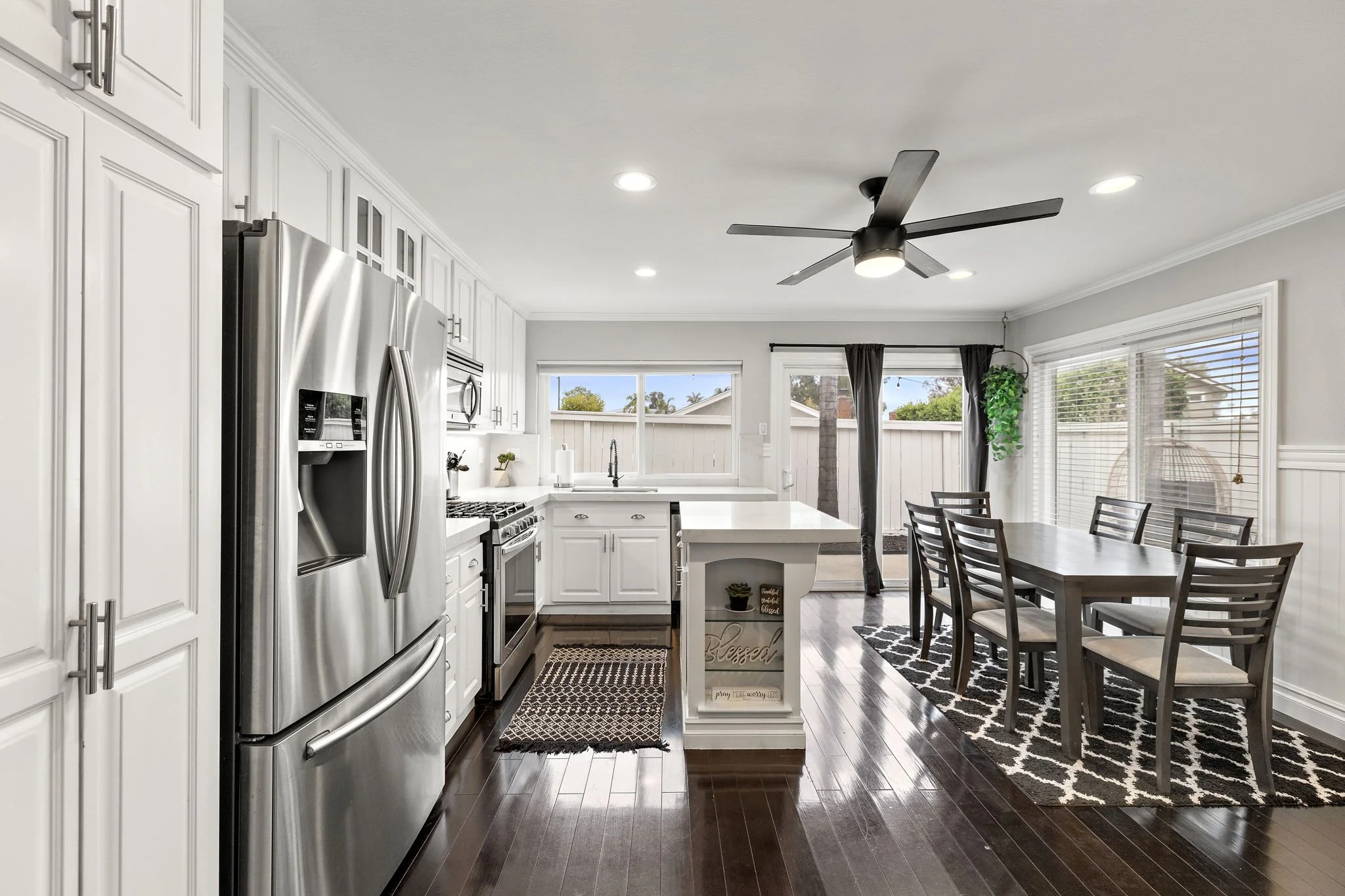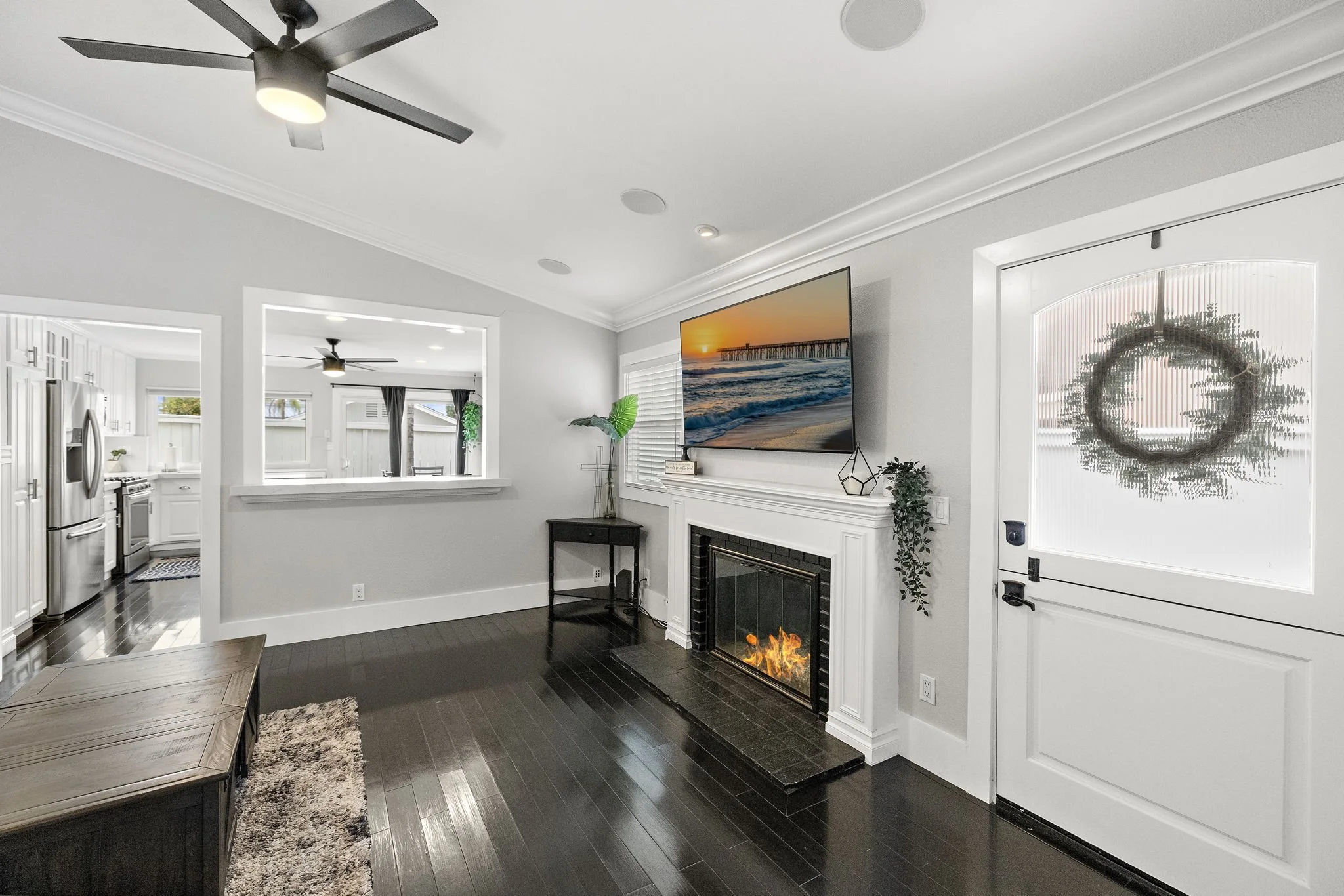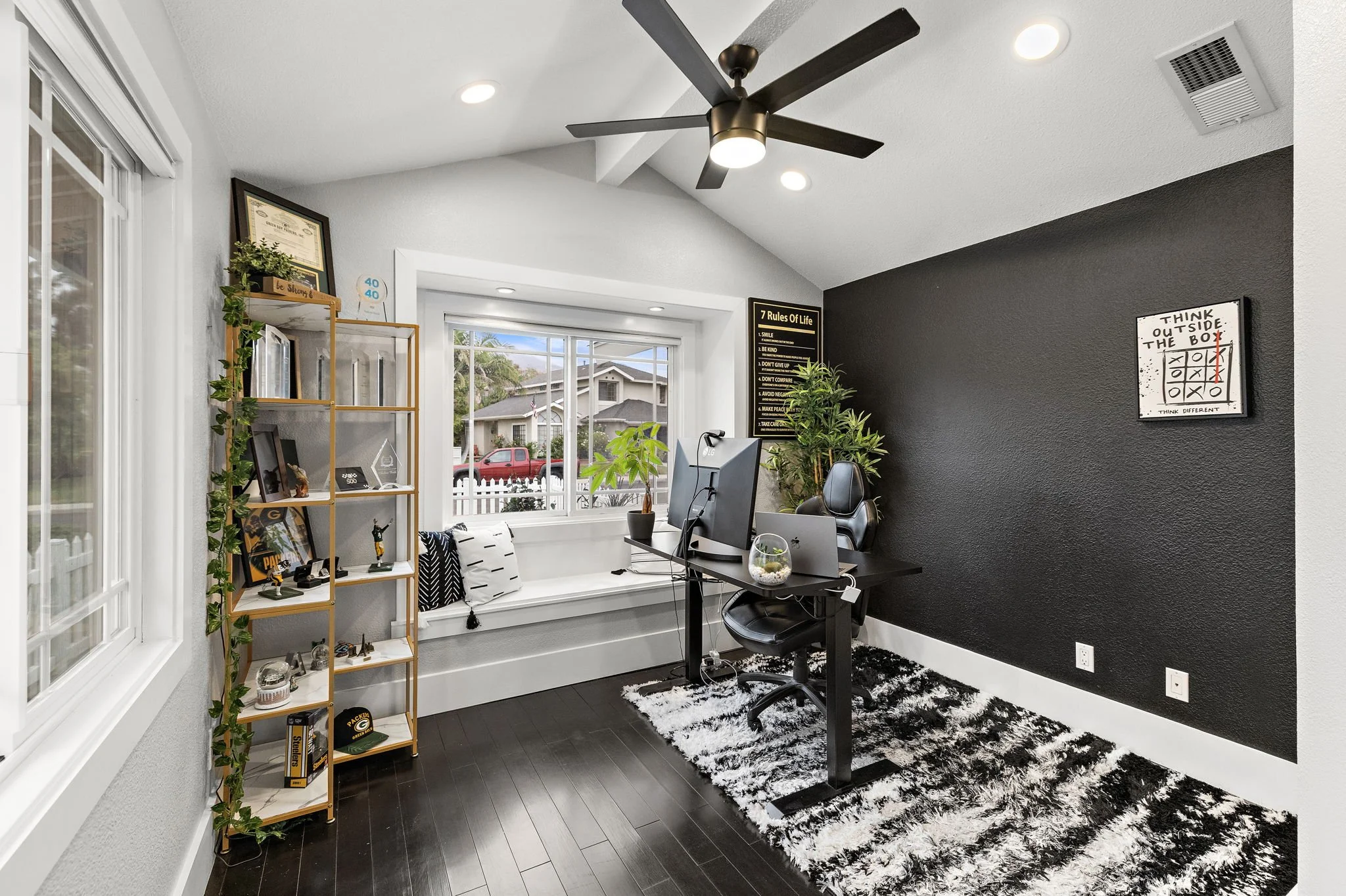 Ideally located on a peaceful side street cul-de-sac in the heart of Robinson Ranch surrounded by beautiful mountains, this updated single-level stunner is sure to impress! Upon arrival, high-pride-of-ownership is apparent with fresh improvements including newer exterior paint, light fixtures, and stylish landscaping. A white picket fence frames in the low-maintenance and useful front turf yard - a great outdoor space! An entry Dutch door welcomes you inside the large living room with a cozy gas fireplace, ascending ceiling plate with overhead fan and wired surround sound. Recently painted inside, the light and bright interior contrasts the dark hardwood flooring throughout. Just off the living room, the updated kitchen offers stainless appliances (newer range), new quartz counter tops, a new sink and faucet, a centered island, formal dining, clever bar-top seating, wainscoting, and ample Eastern-seaboard-style cabinetry for abundant storage. Large picture windows let natural light into the space and glass slider doors access the rear and side patios with an in-line gas fire pit. Very private outside and rare to come by! The family room and open kitchen create an inviting space for relaxing and entertaining. Beyond the living areas, three generous bedrooms (one currently a nursery, one used as an office with bay window and vaulted ceilings) and two nicely-remodeled bathrooms all provide comfortable, turn-key living. The primary offers his & hers mirrored closets, wainscoting, and spa-like bathroom with new vanity, dual sinks, fixtures, counter top, shower enclosure, tile, and mirror. The full guest bathroom has also been highly upgraded in similar fashion and offers a tub. Other newer improvements and values: recessed lighting throughout, light fixtures, ceiling fans, interior/exterior paint, crown molding, a finished garage with MyQ smart garage door system, additional storage cabinets, epoxied floors, washer/dryer, water heater, privacy side gate, and routinely maintained HVAC system. Just a short walk to Blue Ribbon Robinson Ranch Elementary, amazing neighborhood parks, community pool and amenities, and close to shops, dining, and entertainment, this home offers turn-key convenience and a fun lifestyle beyond.