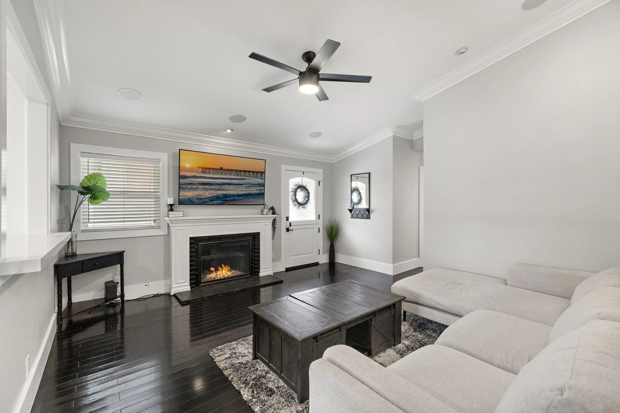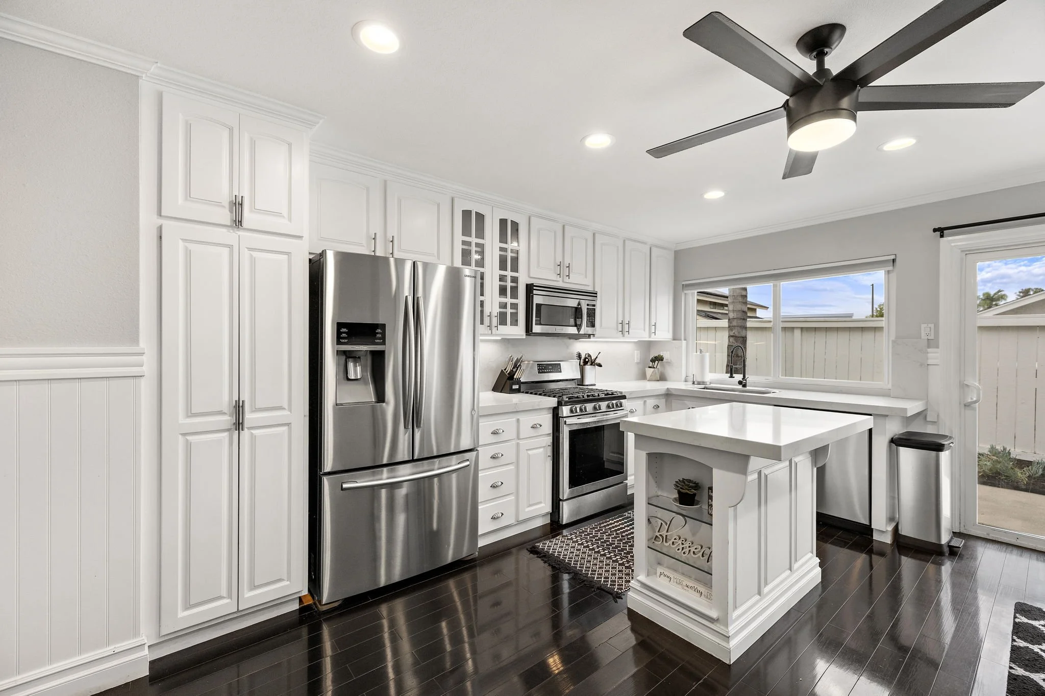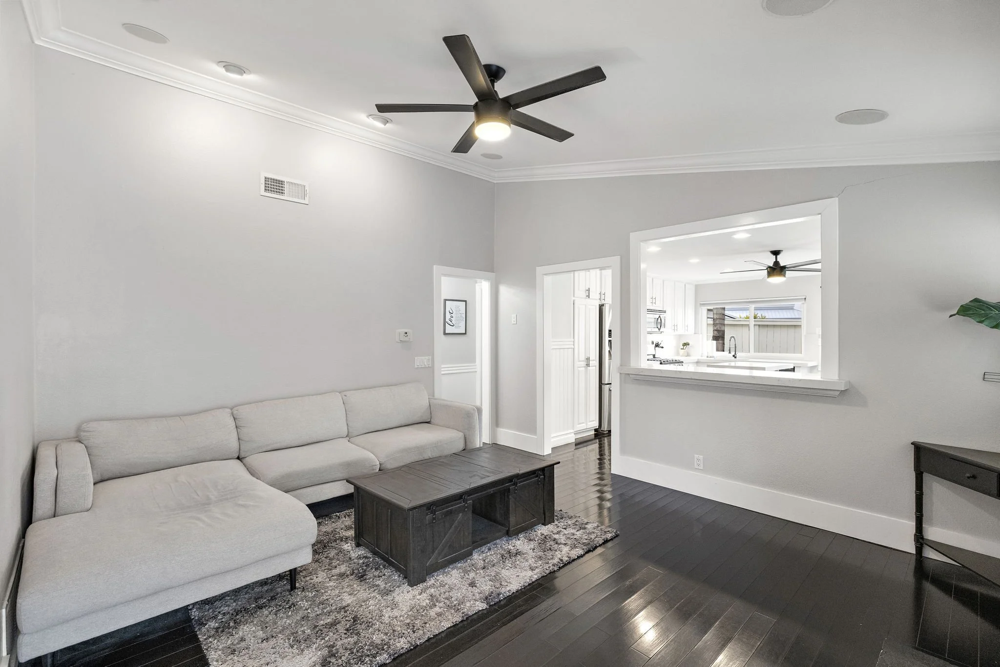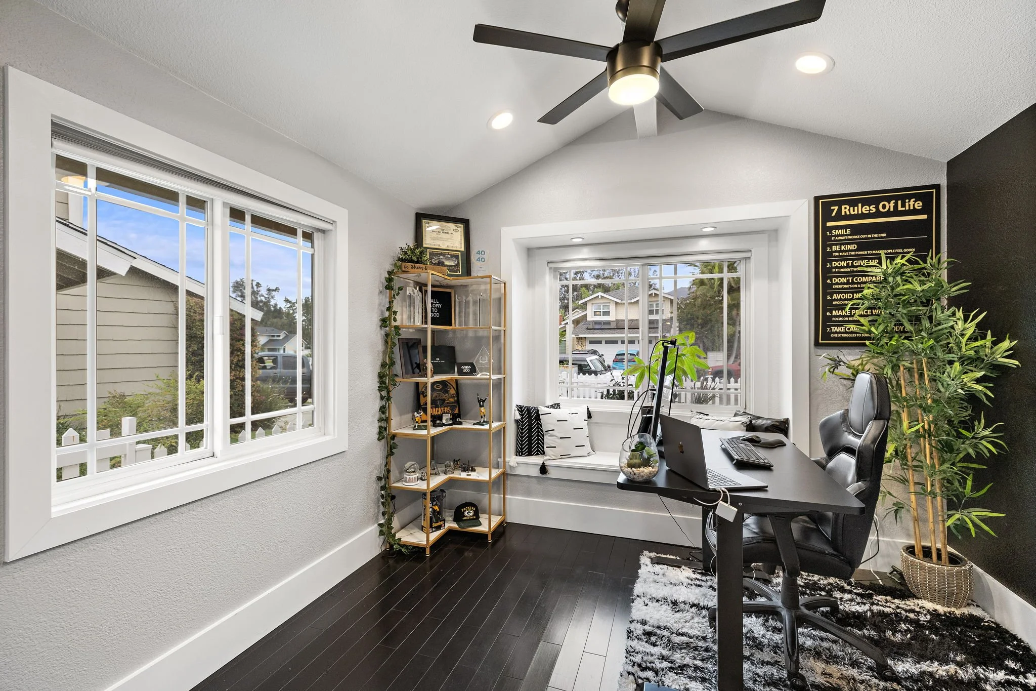 Ideally located on a peaceful side street cul-de-sac in the heart of Robinson Ranch surrounded by beautiful mountains, this updated single-level stunner is sure to impress! Upon arrival, high-pride-of-ownership is apparent with fresh improvements including newer exterior paint, light fixtures, and stylish landscaping. A white picket fence frames in the low-maintenance and useful front turf yard - a great outdoor space! An entry Dutch door welcomes you inside the large living room with a cozy gas fireplace, ascending ceiling plate with overhead fan and wired surround sound. Recently painted inside, the light and bright interior contrasts the dark hardwood flooring throughout. Just off the living room, the updated kitchen offers stainless appliances (newer range), new quartz counter tops, a new sink and faucet, a centered island, formal dining, clever bar-top seating, wainscoting, and ample Eastern-seaboard-style cabinetry for abundant storage. Large picture windows let natural light into the space and glass slider doors access the rear and side patios with an in-line gas fire pit. Very private outside and rare to come by! The family room and open kitchen create an inviting space for relaxing and entertaining. Beyond the living areas, three generous bedrooms (one currently a nursery, one used as an office with bay window and vaulted ceilings) and two nicely-remodeled bathrooms all provide comfortable, turn-key living. The primary offers his & hers mirrored closets, wainscoting, and spa-like bathroom with new vanity, dual sinks, fixtures, counter top, shower enclosure, tile, and mirror. The full guest bathroom has also been highly upgraded in similar fashion and offers a tub. Other newer improvements and values: recessed lighting throughout, light fixtures, ceiling fans, interior/exterior paint, crown molding, a finished garage with MyQ smart garage door system, additional storage cabinets, epoxied floors, washer/dryer, water heater, privacy side gate, and routinely maintained HVAC system. Just a short walk to Blue Ribbon Robinson Ranch Elementary, amazing neighborhood parks, community pool and amenities, and close to shops, dining, and entertainment, this home offers turn-key convenience and a fun lifestyle beyond.