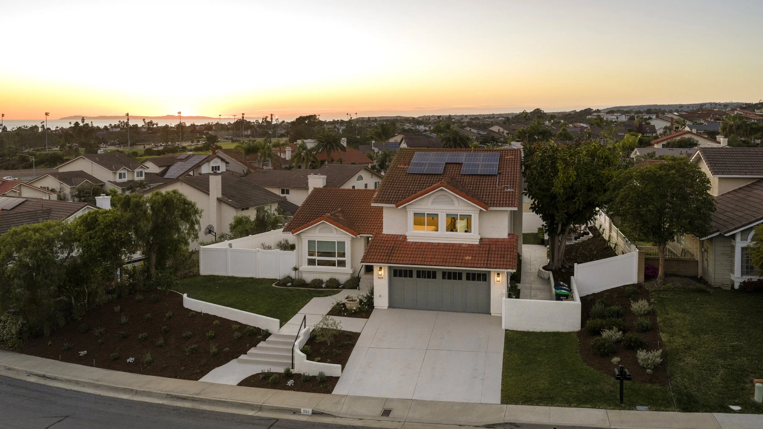 Recently remodeled with attention to detail, this well-appointed Coast District home is absolutely stunning. Upon arrival, the home sits elevated on a quiet side street with recently updated curb appeal. New exterior enhancements include exterior paint, landscaping, handrails, carriage garage door, and a Dutch entry door - all adding to the first impression. Inside, an updated floor plan with ascending ceilings draws you within. Structural walls and interior elevations were carefully modified to enhance the floor plan for modern-day living creating one massive great room - mostly on one convenient level. The formal living room, open kitchen, dining, and family rooms all flow seamlessly together, creating one amazing living space. Finished with a discerning eye for design, the kitchen features all-new cabinetry, Carrara marble counters with massive island, DeVOL brass fixtures, cabinet-faced Fisher & Paykel appliances and newly-added windows all adding to the stylish appeal. A bi-folding window opens to exterior bar seating while a large bi-folding window wall brings the outside inside the fire-warmed family room. A generous grassy yard, large patio with a recently added pergola and elevated ocean-view lounging deck all create amazing outdoor entertaining zones. A wellness garden with a tranquil water feature and Coco wood-fire spa offers a peaceful area to unwind. The outdoor spaces offer a rare sense of privacy from neighboring properties. A sizable bedroom with finished closet, full bathroom, and dedicated laundry room with direct access to the 2-car garage complete the lower level. Upstairs, two well-appointed guest bedrooms share a generous, newly-updated full bathroom. The ocean-view primary suite is simply amazing, with high ceilings, a massive en-suite bathroom and an equipped walk-in closet. Reclaimed wooden doors lead to the tasteful Japanese-inspired wet room, offering a soaking tub, walk-in shower, dual sinks, marble counters, brass fixtures, and privacy toilet. Other values include full PEX re-pipe, new engineered oak wood flooring, solid-core doors, permitted kitchen & bath remodels, paid solar, dual-pane windows & high-end treatments, updated landscaping, new fire sprinkler heads, & EV charging. Reinvented with attention to every detail offering major indoor/outdoor space, ocean views, no power lines, nearby restaurants & shopping, world-class surfing, 2.5 mile beach trail, with close proximity to all San Clemente & Dana Point have to offer.