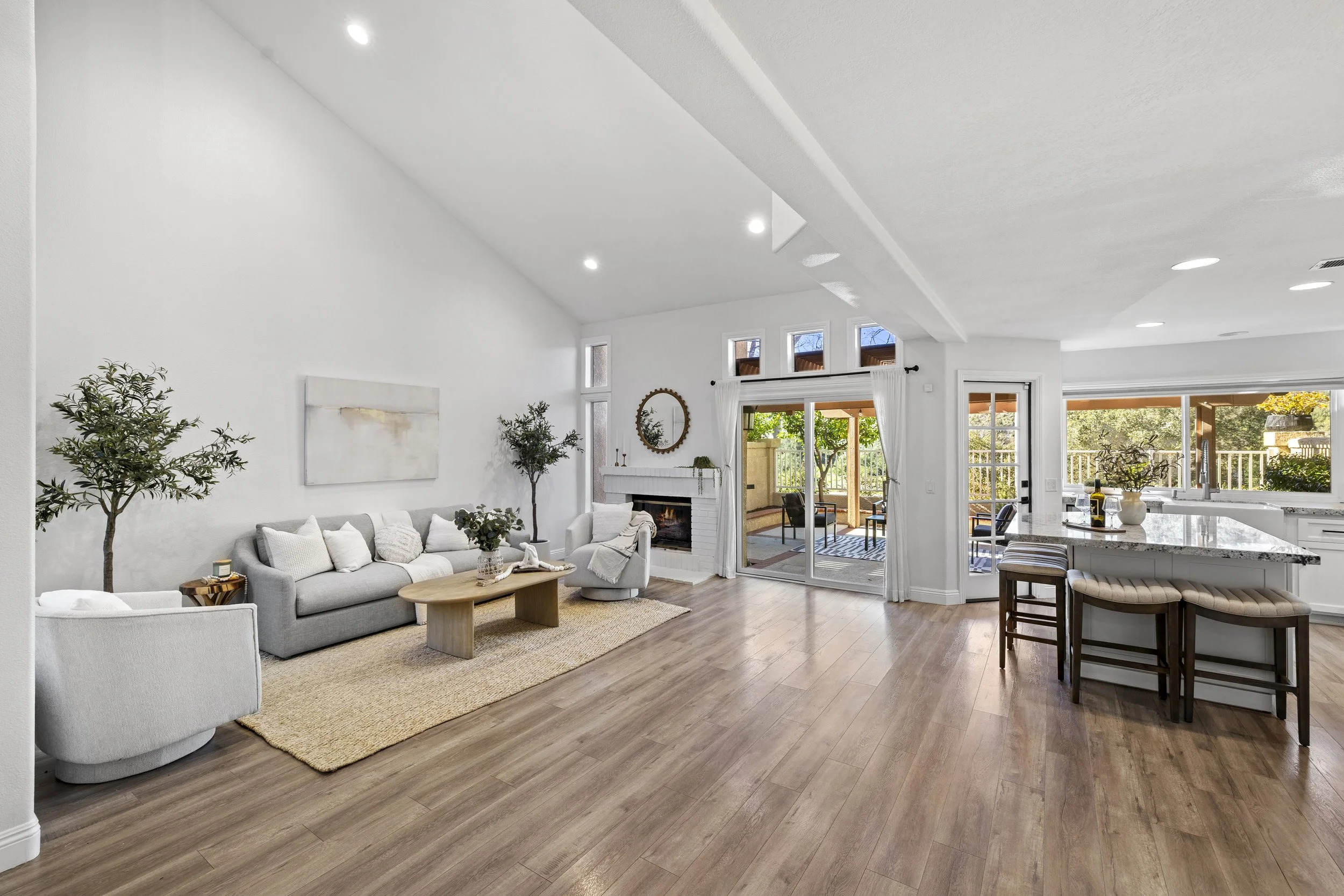 Ideally located just steps from Tijeras Creek Golf Club, this beautifully upgraded Tierra Linda townhome is an exceptional opportunity to enjoy comfortable, low-maintenance living in a highly desirable Rancho Santa Margarita community. The moment you step inside, you’re greeted with soaring vaulted ceilings, large windows and sliders allowing natural light to pour right in. The spacious living room features a cozy gas fireplace and opens effortlessly to the dining area and kitchen, providing a functional and inviting layout. The kitchen is highlighted by stainless steel appliances, white shaker cabinetry, farm sink, subway tile, granite countertops, and a generous island that provides additional storage, bar seating for four and prep space. This unit features a rare and fully open-concept great room - a huge upgrade from the original model. The living space, kitchen, and dining share one room with no interfering beams or walls creating one impressive living area with 2-story ceilings. A convenient powder room on the main level services the great room with direct garage access. The private outdoor area has been thoughtfully updated with fresh landscaping, a newly-constructed pergola, and a new patio door while providing picturesque views of the surrounding hills. Upstairs, you’ll find two generously-sized primary bedrooms that have been updated with luxury vinyl plank flooring. The rear suite offers vaulted ceilings and major views out to open, undeveloped land with a major trail system. The front bedroom is also very spacious with vaulted ceilings and mirrored closet doors. Each bedroom offers a private en-suite bathroom and ample closet space (the rear features a large walk-in). Both bathrooms are well-appointed with ample counter space and storage. The rear has a walk-in shower and the front offers a shower and tub. Other upgrades include a new HVAC system, fully re-piped, luxury vinyl plank flooring on the stairs and entire second level, and select windows have been replaced. Enjoy a community in top condition, with the exterior being recently painted and the HOA currently in the process of completing a re-roofing project across the neighborhood. All residents also have access to premium amenities including a pool, spa, BBQ area, sport courts, and full SAMLARC privileges. Ideally located near award-winning schools, scenic parks, dining, shopping, and major commuting routes, this turnkey property is move-in ready!